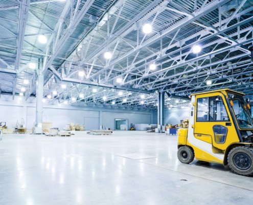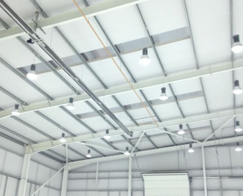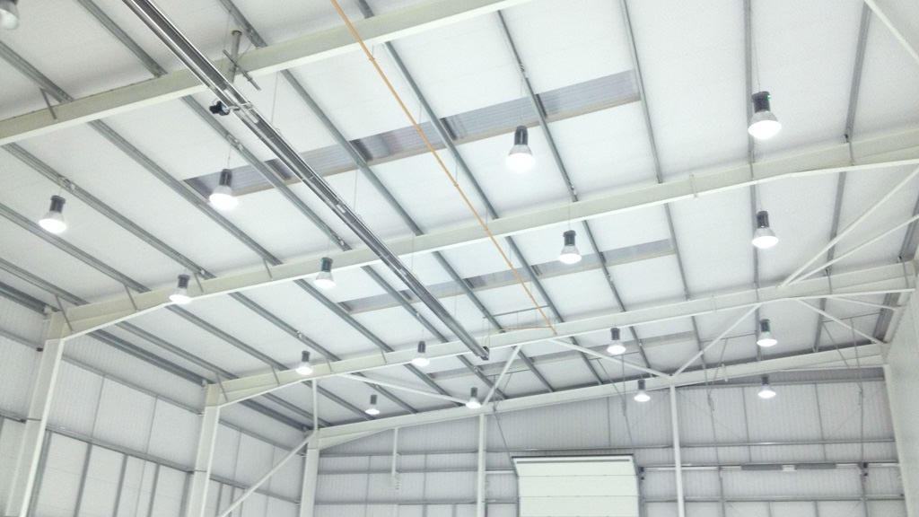 High Bay overhead lighting in manufacturing and warehouse spaces and large open offices with overhead and task lighting are common in this type of building and can consume a lot of watts.